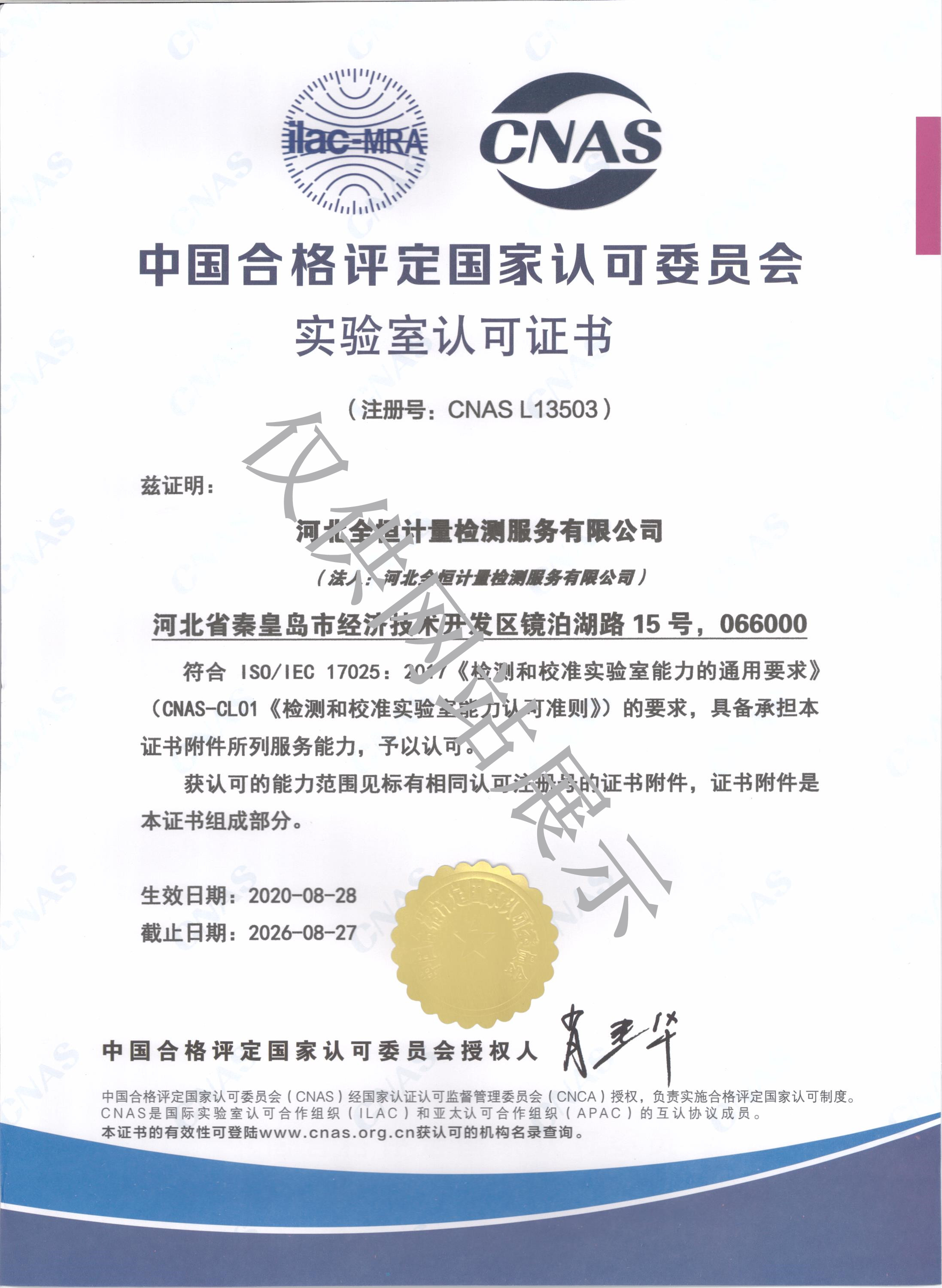 2020年11月27日至29日,來自中國合格評(píng)定國家認(rèn)可委員會(huì)的評(píng)審專家組一行蒞臨河北全恒計(jì)量檢測(cè),